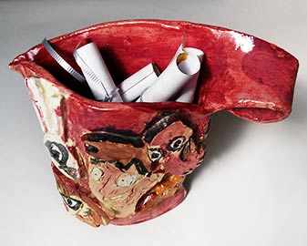 My inspirational wish ‘jar’ is a fabulous large ceramic jug. A bona fide work of art, indeed a true ‘one-off’, I purchased it a few years ago at an Art Fair held at the Peter Hall School in the Ville Saint-Laurent borough of Montreal. All the exhibitors were people with disabilities and the range of art and crafts offered for sale was impressive and extensive.