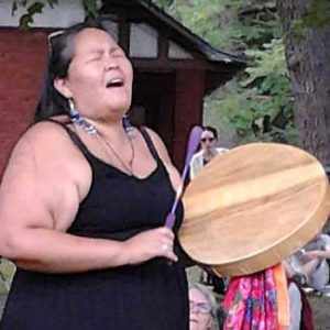 Happily, by the close of the concert, Elma was feeling somewhat better after her tentative beginning and remarked that an afternoon in the park sharing songs, words and music had been exactly what had been needed to refresh her body and mind. So much so that she got up again on the stage as the event was being ushered out by the lady drummers of BearHeart Medicine Drum and, as they drummed the event to a close, she incorporated what she had wanted to add to her presentation into their final performance. Many more of her stories and explanations can be found online in her 2012 McGill doctoral thesis entitled Dancing with Chikapesh.
