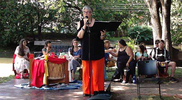 To some it was the reprise of the Ode to the Climbing Tree from the 2010 Poetry in the Park that paid tribute to Mother Nature and her part in the regeneration of the two black willow trees by the lagoon, a scant seven years after the demise of Westmount Park’s beloved Climbing Tree, the trunk of which is still present and lying prone on the ground, providing a natural seating place for concert goers.