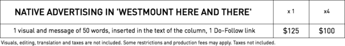 Rates for Native Advertising in WestmountMag.ca