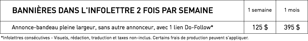 1 semaine (2 infolettres) : 95 $