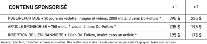 • Le contenu commandité reste disponible sur le site et dans les moteurs de recherche après la promotion.