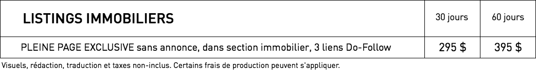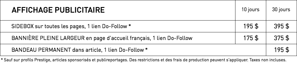 avec des annonces de format Sidebox ou des bannières placées dans nos infolettres et vos listings.