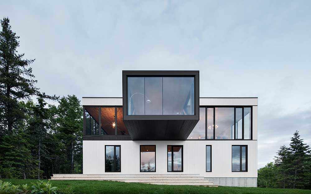 Simple and pure architecture gently complements the landscape of Charlevoix