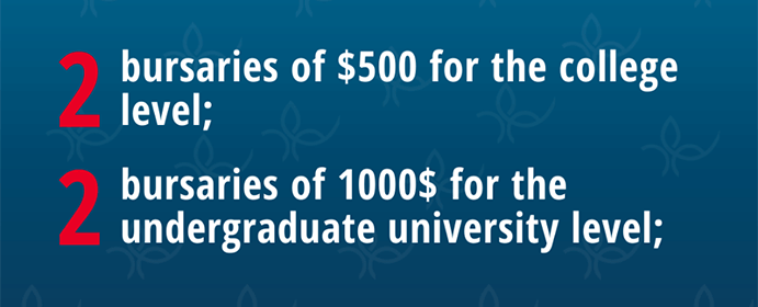Of the four bursaries, two in the amount of $500 will be allocated to college students and two of $1000 will be awarded to undergraduate level university students.