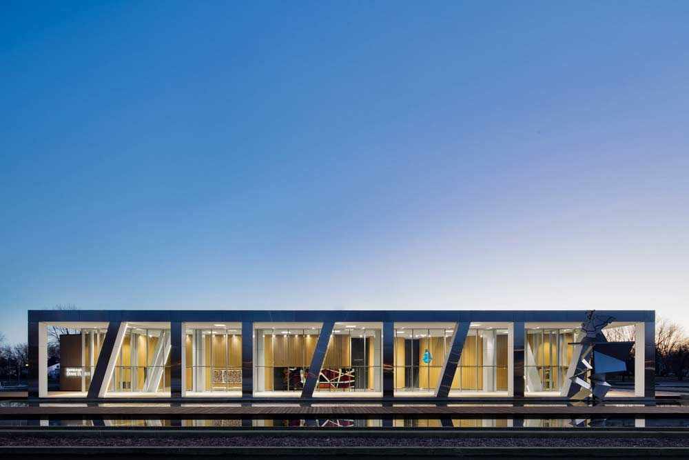 Fait important, le centre contribue à la communauté, quelle que soit l’heure de la journée. La nuit, il agit comme une lanterne, éclairant le parc environnant et créant une réflexion sereine dans l’étang – réflexion qui exprime un sens de la temporalité et qui va susciter un sentiment de sérénité pour les années à venir.
