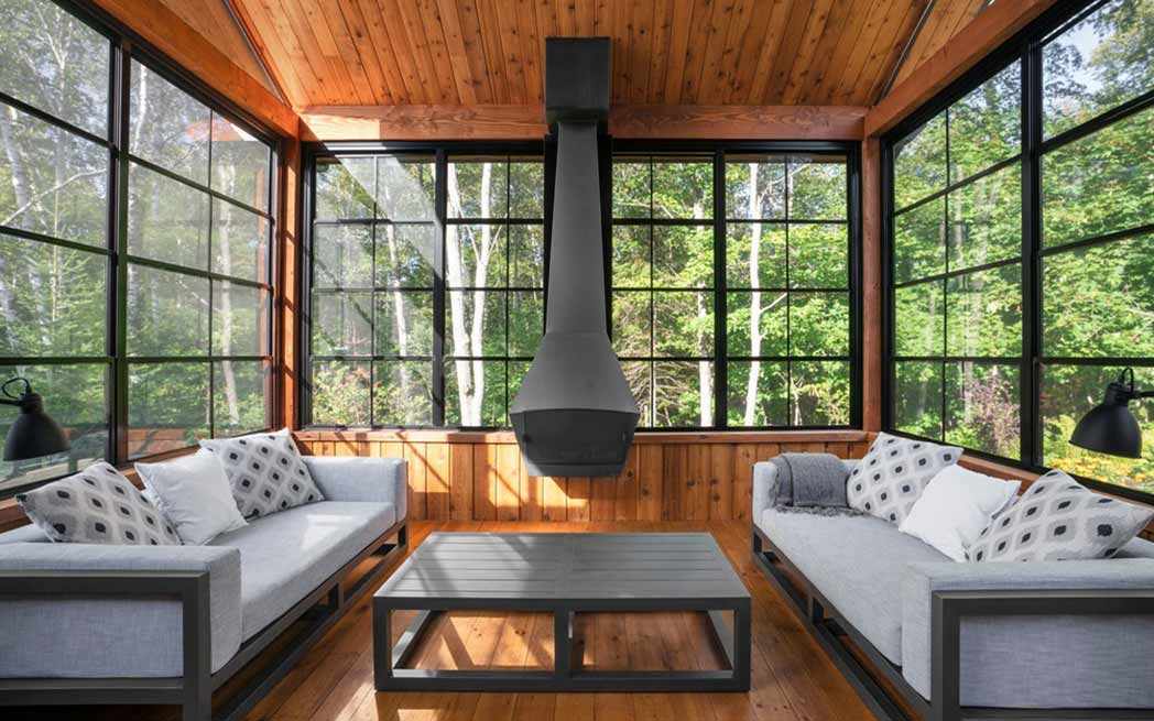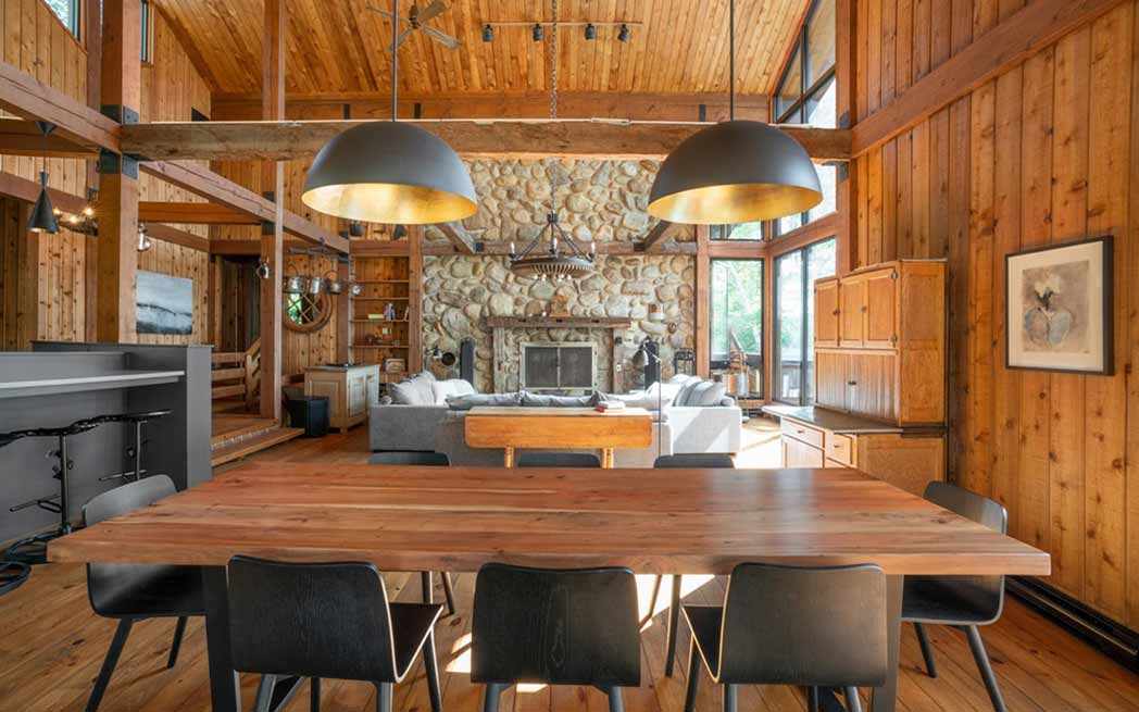 Le chalet ainsi transformé répond maintenant à l’ensemble des besoins de la famille, et ce au fil des saisons. Cette résidence de Saint-Donat dialogue aujourd’hui avec son histoire et la nature qui l’entoure, devenant un véritable havre de paix confortable et chaleureux.