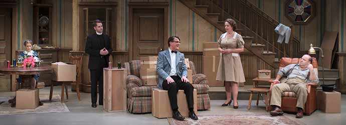 In Act One, set in 1959, Gruff Harry Standjofski is Russ, the husband of sometimes ditsy Bev (Lisa Bronwyn Moore) owners of a house in the fictional Clybourne Park area, who are packing to move to another location to be nearer his work upon the successful sale to an unknown buyer. Their polite black maid, Francine (Liana Montoro) aids in the background but is largely ignored as if she isn’t there as is her later arriving husband Albert (Kwasi Songui).