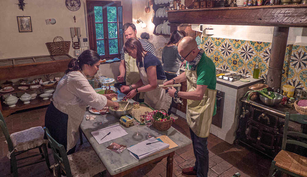 The first dish guests are invited to prepare is an authentic antipasto. Too many restaurants ignore antipasti and focus on pasta, but this is a traditional meal to be enjoyed year-round, with an antipasti selection based on seasonal and local produce. Each course is paired with an Italian wine. Appetizers are based on both wild and cultivated foods, and in Tuscany, food choices are seasonal, taking advantage of the freshest produce.