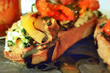 When you make crostini, the most important ingredient is the baguette. Buy the best quality you can find. Refrain from purchasing mass-produced bupkis. Visit a good bakery and choose a baguette with a crisp, golden crust and plenty of alveoli (air pockets).
