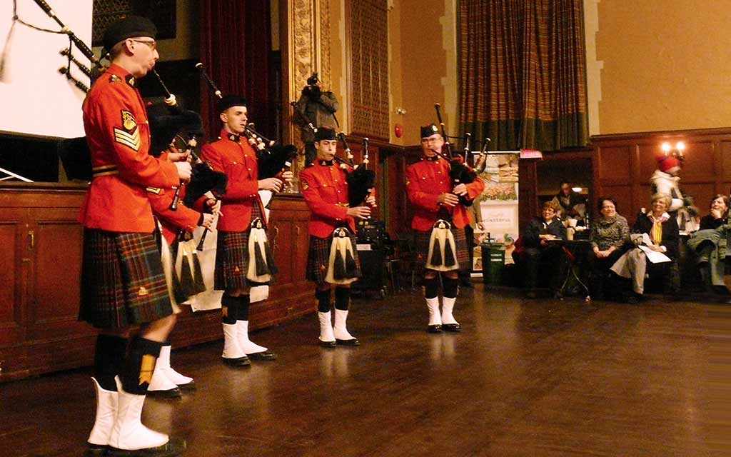 Throughout EH, weather permitting, the amateur astronomers of the Royal Astronomical Society of Canada – Montreal Centre will be outside pointing their telescopes skyward to provide splendid views of the giant planet Jupiter with its amazing four bright orbiting moons, our Moon and other celestial delights. Hydro Westmount will douse the lights around Victoria Hall for better viewing and as an example of what the whole City could look like with reduced lighting. The RCMP Pipes and Drums Band will announce with great fanfare the beginning of the actual Earth Hour at 8:30 pm.