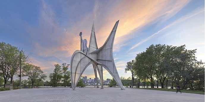 With its integrated design approach, Lemay developed a meaningful adaptive reuse and holistic design strategy to create an original user experience via enhanced reception services, flexible event space and improved visitor orientation for this unique site connecting the island’s north and south shores. It sculpted the space into a geometric pattern defined by inclined planes and the iconic central pathway, which now maximizes views of the Calder sculpture. The latter draws visitors from the metro into the site with its distinctive seating areas, green space and breathtaking views of downtown, Old Montreal and the St. Lawrence River.