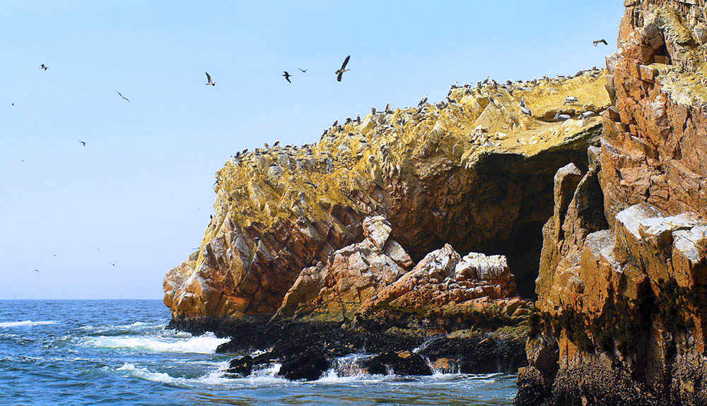 The Bay of Paracas, formed on the north part of the peninsula, has historical significance for Peruvians. It was here that José de San Martín disembarked with the liberation forces and began the campaign for independence to end the Spanish viceroyalty. On Sequion beach you frequently see one of the rarest flamingos in the world—Andean parihuanas—of beautiful red and white plumage, whose colors inspired the Peruvian flag.