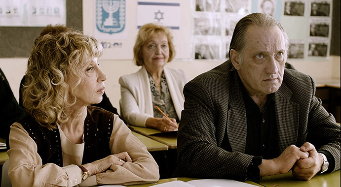 Around 1990, after Gorbachov’s Glasnost in Russia, there was a major jump in the numbers of Soviet Jews permitted to emigrate to Israel. This film follows the fortunes of two of them, a 60ish married couple, Victor and Raya (Vladimir Friedman and Maria Belkin), both successful “dubbers” into Russian of foreign films.