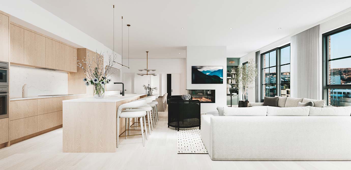The harmonious spaces, high ceilings, generous windows, quality finishes and noble materials have been carefully selected and designed to create a timeless, welcoming living environment that will meet the expectations of the most discerning clientele. Whether you’re looking for a spacious kitchen where you can whip up culinary delights, spaces bathed in natural light where you can relax, or abundant storage to make your day-to-day tasks easier… no detail is being spared to ensure you benefit from a fully customized living environment.