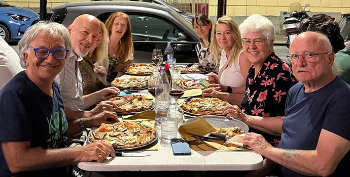Rejoignez le grand chef calabrais Emanuele Plati pour un cours de cuisine pratique qui se conclut par un festin de pâtes fraîches et de spécialités régionales. C’est une expérience qui marie le plaisir des sens et la compréhension culturelle – apprendre en goûtant, en riant et en cuisinant ensemble. Les soirées rassemblent tout le monde pour des jam-sessions spontanées, des concerts informels et une chaleureuse convivialité. Des musiciens locaux, dont les talentueux frères Francesco et Giacomo Cerullo, se joignent aux participants pour partager la musique dans une atmosphère plus familiale qu’en scène.