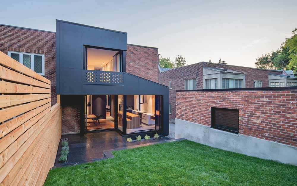 Cette maison unifamiliale urbaine jumelée, en brique d’argile rouge, est typique de Westmount et de l’arrondissement Notre-Dame-de-Grâce de Montréal. Nous y avons greffé deux parallélépipèdes noirs disposés en quinconce qui, juxtaposés à l’existant, le met en valeur. Nous sommes toujours à la recherche d’un équilibre subtil entre le nouveau et l’ancien afin de créer un tout cohérent, préservant l’authenticité des détails existants tout en affirmant la contemporanéité de l’intervention.