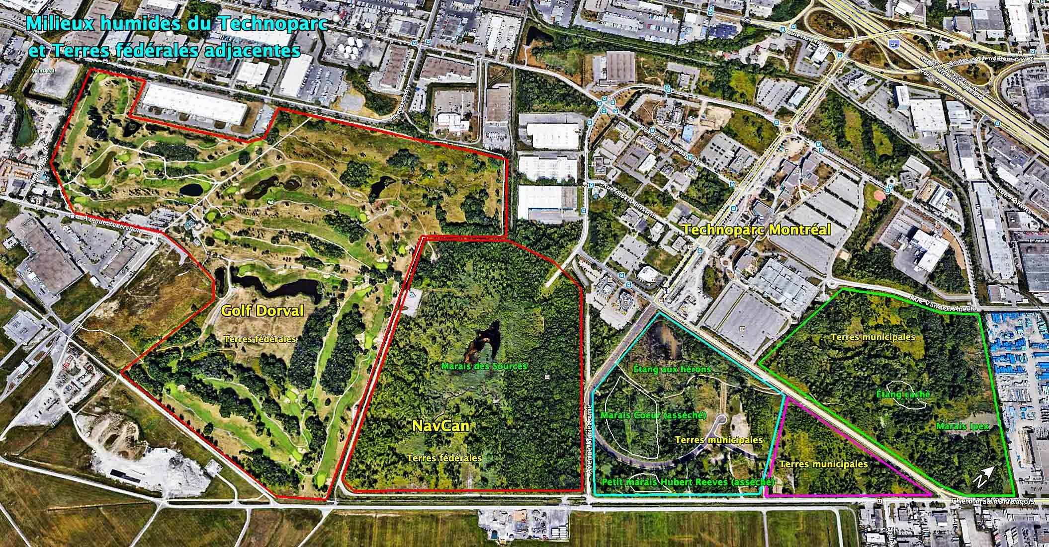 Vue aérienne des zones humides du Technoparc, courtoisie de la Coalition Verte – Cliquer pour agrandir l’image