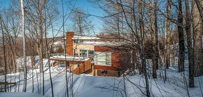 Majestueusement déposée sur son nichoir boisé au cœur des Cantons de l’est, cette maison de campagne désire à la fois dominer et se fondre au décor.