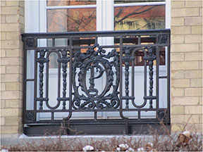 Lettre « P » stylisée, en fer forgé, située sur la maison Louis-Léonce Leopold.