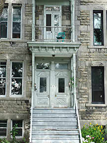 L’ancien site des appartements Quinlan. Leur destin contient une anecdote intéressante. Désignés pour la démolition en 1976, le gouvernement du Québec a toutefois déclaré que leurs portiques étaient dignes d’être préservés. Cependant, durant le processus de démolition, la façade du bâtiment a été jugée instable et, en conséquence, a été démolie. Les portiques du bâtiment ont fini par servir de luminaires de jardin, à l’extérieur d’une maison sur Trafalgar Road, près de Côte-des- Neiges. Fait intéressant, cette maison appartenait à l’époque au petit-fils du maçon qui avait érigé les portique d’origine, en pierre magnifiquement sculptée en face de l’allée de la maison. La maison est toujours debout, bien que subissant actuellement des rénovations majeures. Les bases des portiques sont largement oubliés, rangés sur le côté de la maison, leurs colonnes servant de poteaux à l’entrée du garage.