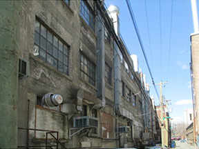 Derrière l’ancien bâtiment de la Packard Motor Car Company of Canada Ltd.