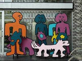 Cette oeuvre d’art a une histoire intéressante. Elle est intitulée Érotisme, une création du sculpteur Armand Vaillancourt (1983-1986). L’œuvre avait une apparence tout à fait différente quand elle a été initialement installée. En raison de la réaction de quelques résidents face à sa représentation de nudité frontale, M. Vaillancourt a dû retourner à son atelier d’art afin de couvrir les parties génitales en cause.