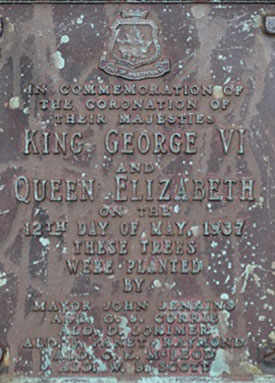 Une plaque commémorative dans le parc explique l’origine du nom des jardins Queen Elizabeth. Une rangée d’érables a été plantée par la municipalité, le 2 juin 1953, pour commémorer le couronnement de la reine Elizabeth II.