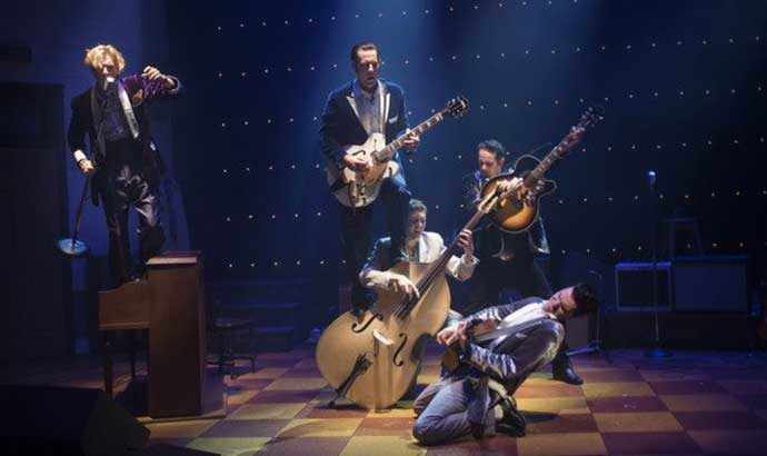They were the now successful Carl Perkins, father of rockabilly (Edward Murphy), the swivelling Elvis Presley (George Krissa) and the more stationary Johnny Cash (Sky Seals) joined by the then fledgling Jerry Lee Lewis (Christo Graham).
