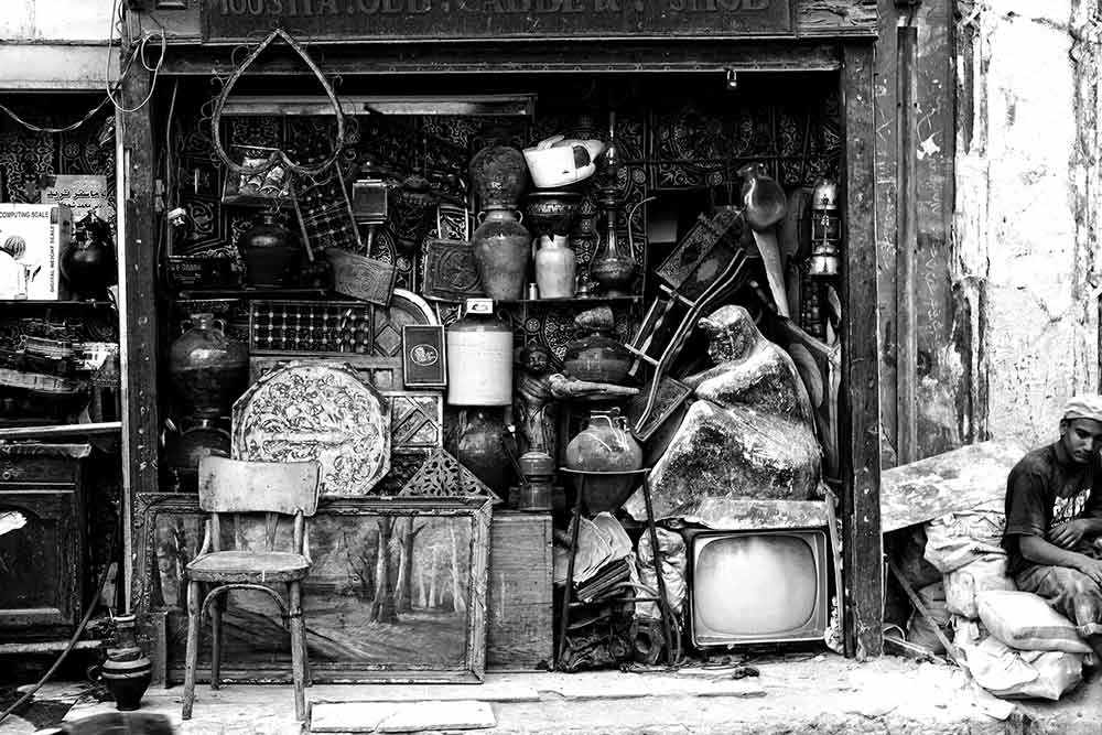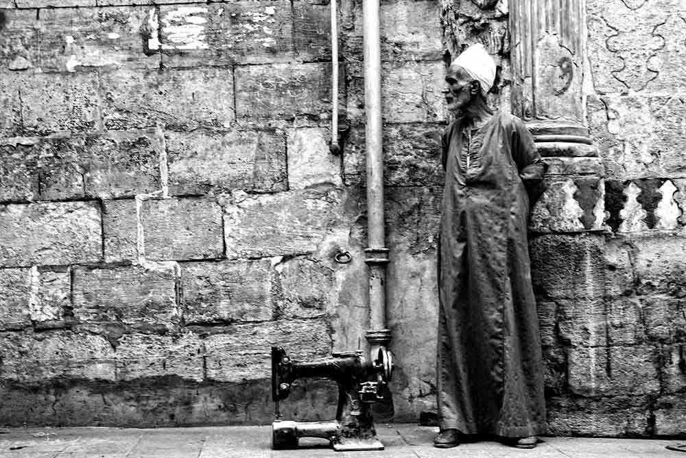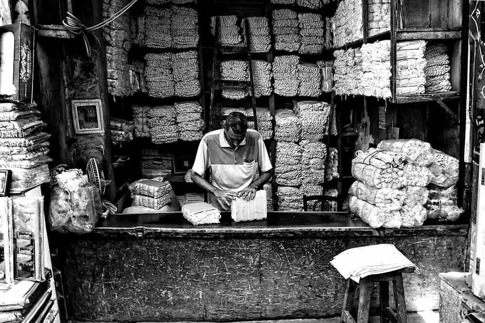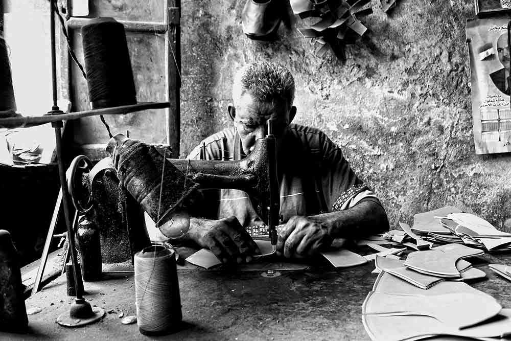Dans les petites rues secondaires, il y a des hommes qui ouvrent d’anciennes portes décrépites qui révèlent de petits ateliers. Quelques marches descendent vers une pièce sombre et révèlent un homme à côté d’une vieille machine à coudre, cousant soigneusement des morceaux de cuir ensemble. Dans une autre pièce, un jeune garçon aiguise un métal sur la pierre, dans un jaillissement d’étincelles.