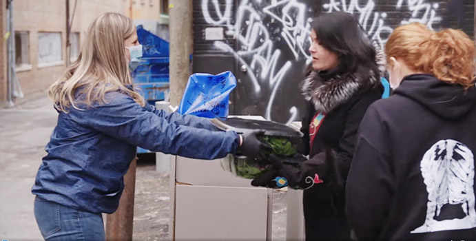 MNA for Westmount–Saint-Louis, Jennifer Maccarone (left), delivering food to those in need in the first episode of Nos élus