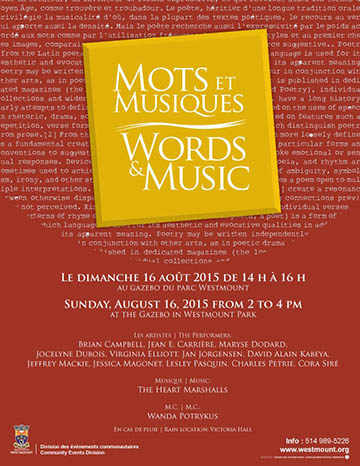 Every summer in Westmount Park for the greater part of the last decade or so there has been a wonderful event tucked at the tail end of the summer Sunday concert series, originally entitled Poetry in the Park and more recently known as Words and Music.