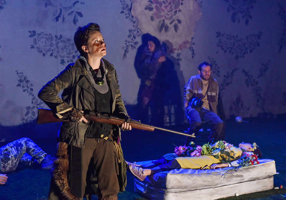 In her Director’s Statement in the program of this English language premiere of the Quebec play “Province” by Mathieu Gosselin, Stacey Christodoulou places it in a pantheon of three movies wherein doom and gloom are mixed with absurdity. I think a better example is H.G. Wells’s 1896 “The Island of Dr. Moreau”, wherein animals are surgically transformed into humanoids and revolt against their creator.