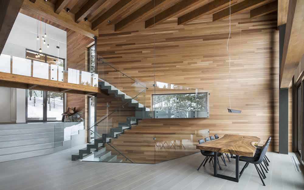 Cette résidence contemporaine se démarque par l’expression de la structure de bois
