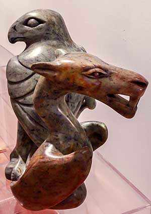 Car c’est au niveau de sa pensée créatrice que ce maître-sculpteur se distingue le plus. Naguère les Inuits ont, en effet, eu des contacts avec les Vikings. Ces deux peuples nordiques partageaient alors des valeurs, des croyances spirituelles semblables renforcées par les liens qu’ils entretenaient avec la terre et les esprits.