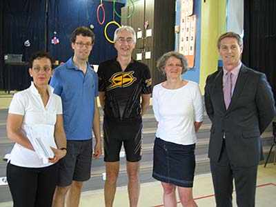 Westmount Director General Mike Deegan addressing students at the Vélo Québec Cycliste averti awards ceremony.