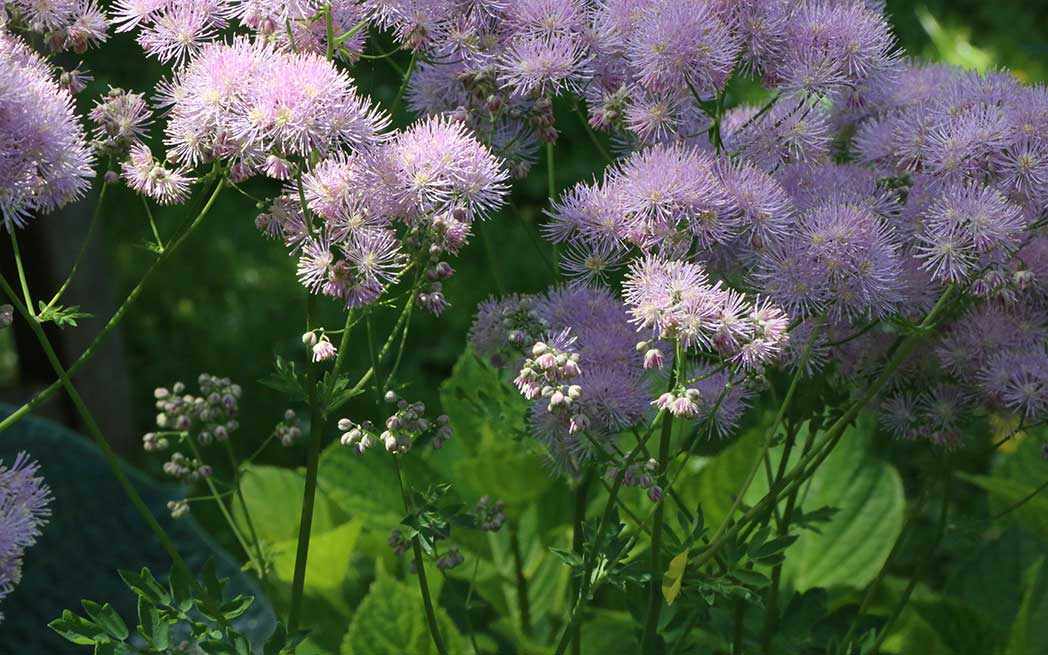 We then arrived at a series of neighbouring gardens, once part of a large estate, and each unique in its own way. One was a shady back garden with an original stable covered in climbing hydrangea. A floral arch framed with clematis led to an area where familiar hostas and ferns flourished with peonies, Thalictrum and Kirengesholma palmata. I learned that this garden has been cared for by many generations of the same family.