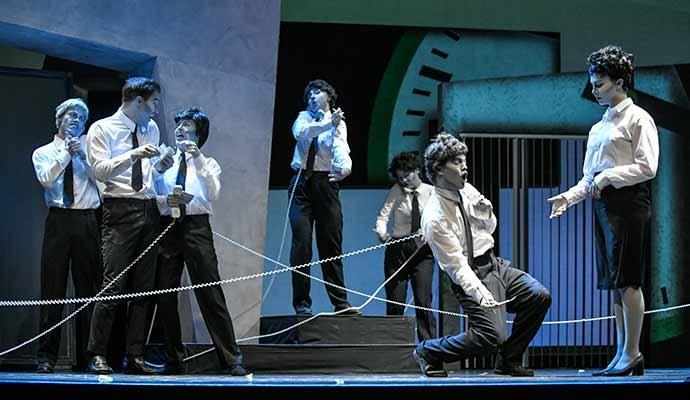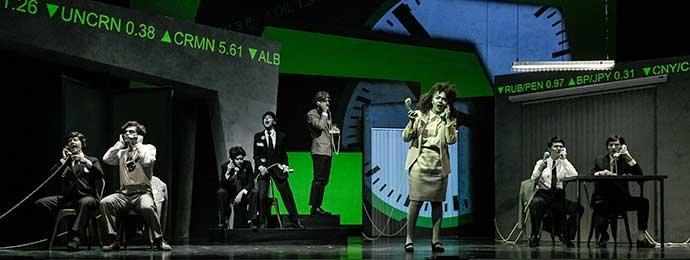 The graduating class at the National Theatre School recently performed Caryl Churchill’s demanding play, Serious Money at the Monument National.