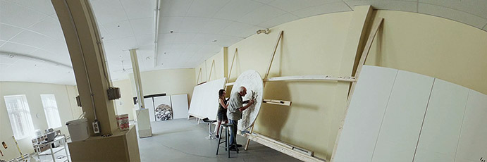 Territoires des Amériques revisits sixty years of practice by multidisciplinary artist René Derouin. In the manner of an artistic and virtual travel diary, this immersive film follows René Derouin on the road to the pivotal places of his journey and his inspirations from Quebec to Mexico. In the course of this documentary, the artist reveals the intimate links between his approach and his quest for identity through the creation of an original large circular work, in perfect harmony with the form of the film.