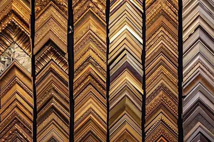 I entered the shop that I had passed numerous times. There were oils and acrylics and prints on display. At the back of the room, the wall was so covered in frame corners that it gave the impression of an undulating wave of brown, silver and gold.