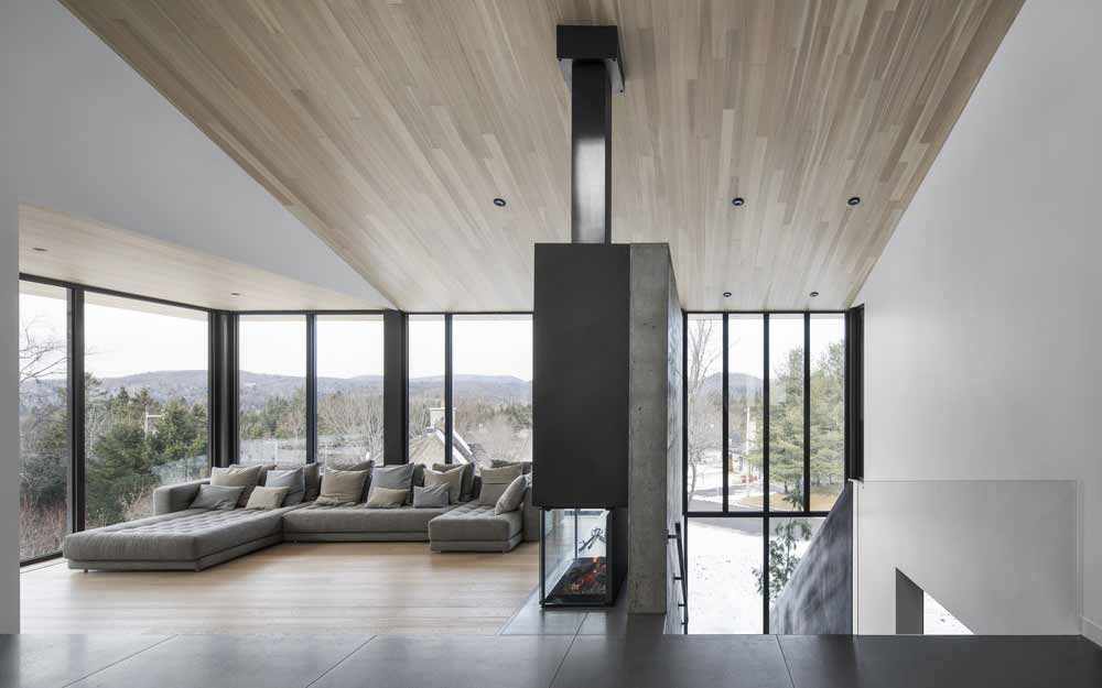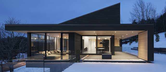 La Villa Vingt se distingue par sa forte présence dans le paysage environnant. Son architecture, caractérisée par un jeu de volumes et une façade horizontale, évoque certaines villas californiennes. Située sur un terrain en pente à proximité de la station de ski Le Relais, elle bénéficie d’une vue imprenable sur les collines des Laurentides et le quartier résidentiel du Lac-Beauport.