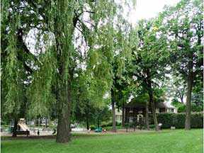 There was a library on far side of the park. This is the area between St Catherine and Sherbrooke.