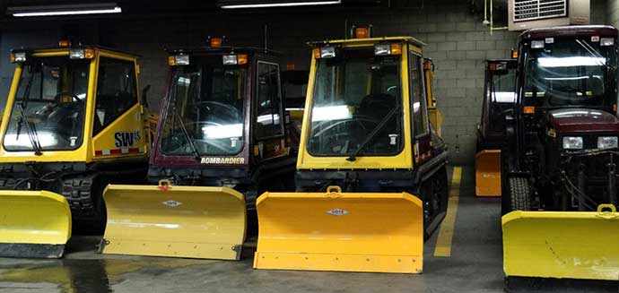 Several of the buildings are used as municipal garages that are fully equipped to perform mechanical repairs. The area has a fuel management system that includes several pumps and underground gasoline tanks. In addition, there is a paint and sign shop, a welding shop and areas where refuse from the parks is unloaded. Did you miss this week’s garbage collection? There is a place at the yards for that as well. There is also an area containing asphalt that is used as temporary road fill during the winter season. Two large shelters contain sand and rock salt (mixed with calcium chloride) that are used on the city’s streets as winter abrasives.